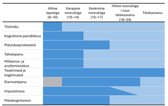 Arenguseire Keskuse tellimusel valmis TÜ psühholoogide poolt uuring, millest selgus, et noorte otsustusprotsessil on teatud eripärad võrreldes täiskasvanutega. Kuigi alaealiste kognitiivsed võimed (nt mõtlemine ja teadmised) arenevad varakult, kujunevad just pidurdusprotsessid, eneseregulatsioon ja metakognitsioon välja hiljem. See selgitab, miks noored suudavad rahulikes oludes teha kaalutletud otsuseid, kuid emotsionaalselt laetud ja sotsiaalse survega olukordades võivad nad käituda impulsiivsemalt.